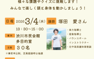 講師の指導の下、簡単なクイズや計算を用いた脳トレ、簡易なコグニサイズ(脳トレ体操)に挑戦します とき ...