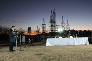 続く点灯式では、敷島自治会長様、宮田自治会長様、当財団理事長が点灯ボタンを押下し、イルミネーションの点灯を行いました。