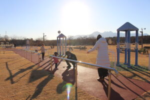イベント初日は会場の健康公園にちなみ、「健康ゲームチャレンジ」を実施しました。